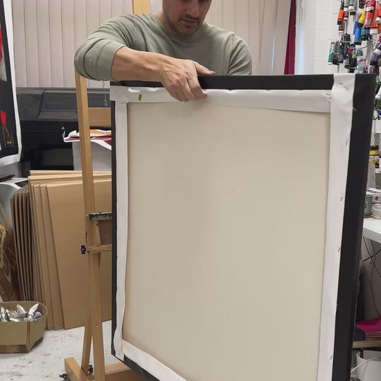 أضف لمسة من الروحانية العميقة لجدرانك، وامتلك قطعة تحمل معنى يتجاوز حدود اللون والفرشاة. اللوحة متوفرة للطلب مع إطار خشبي أسود أو بني غامق وجازه للتعليق